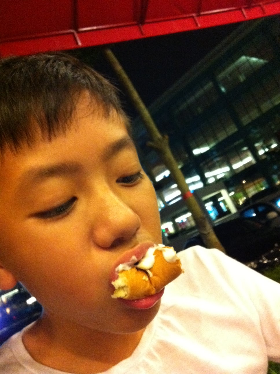 Daddy and Adik cheering up on Vanilla and Caramel milk. Yummy.